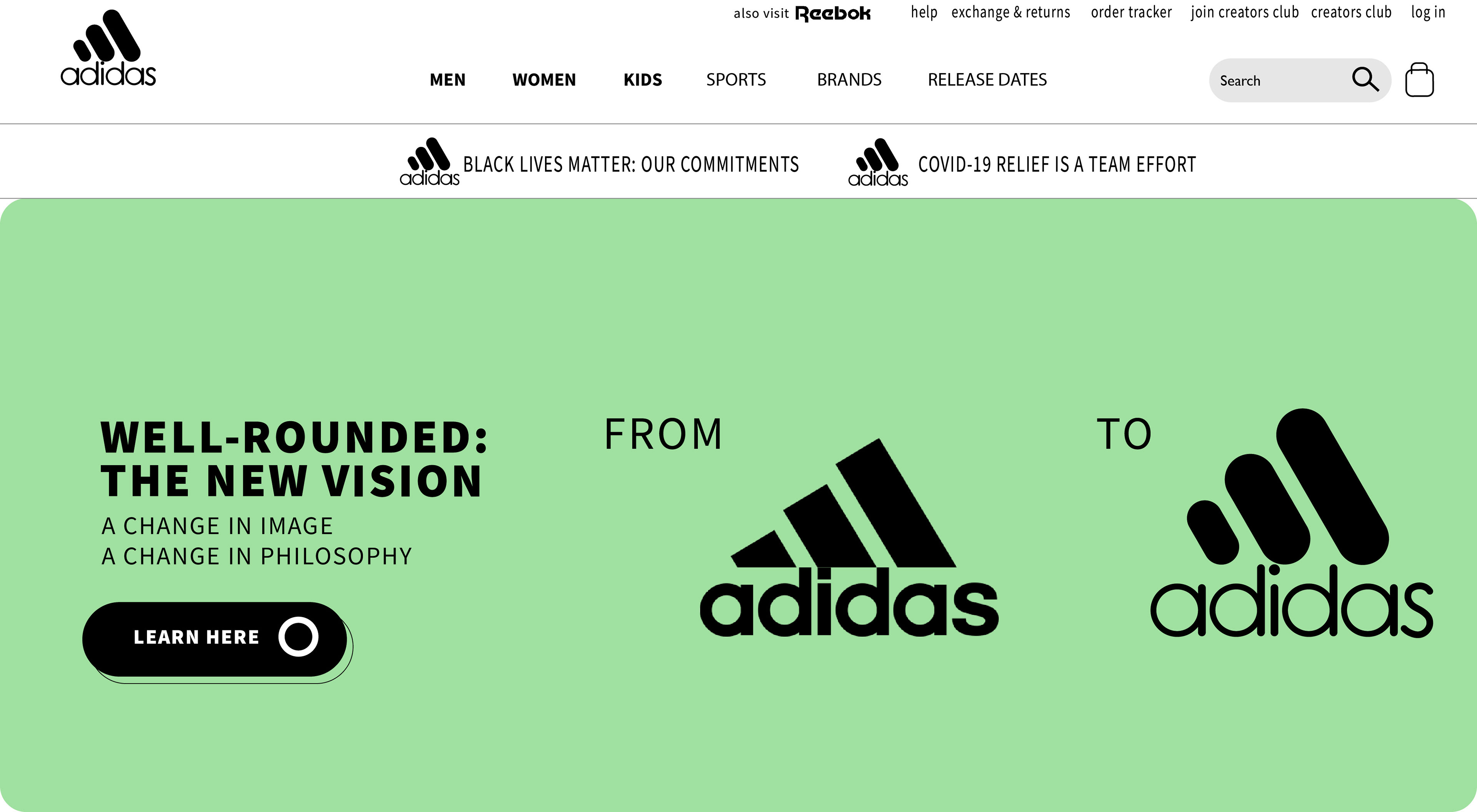 New Adidas Homepage